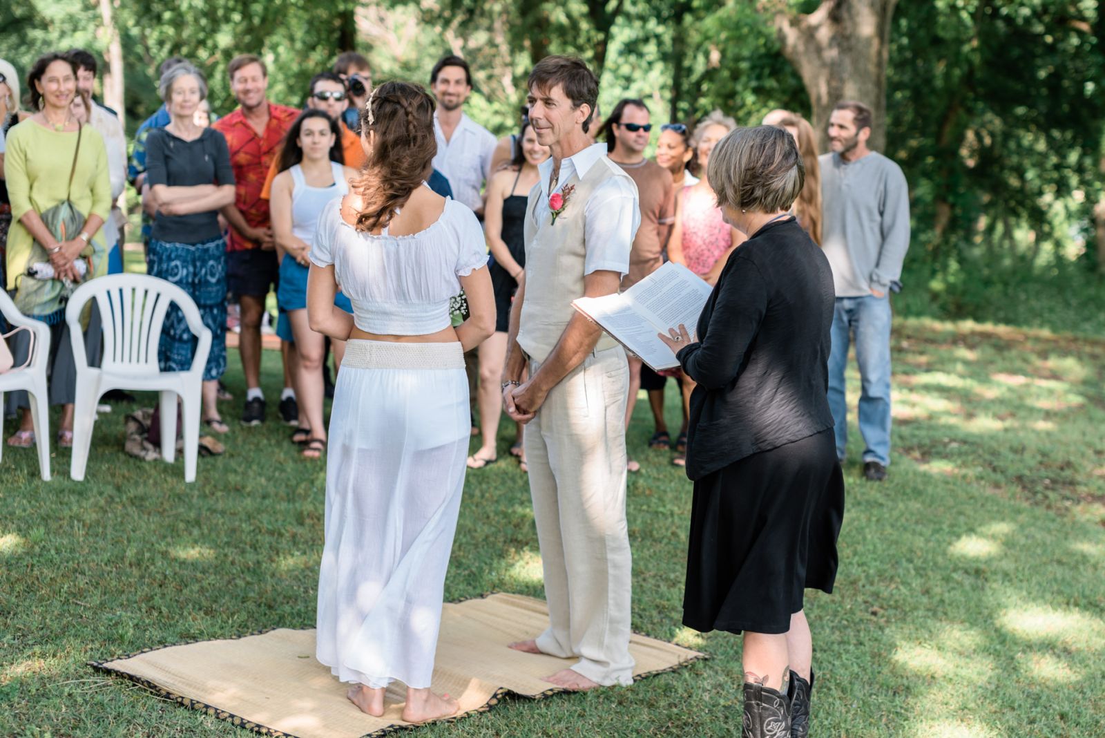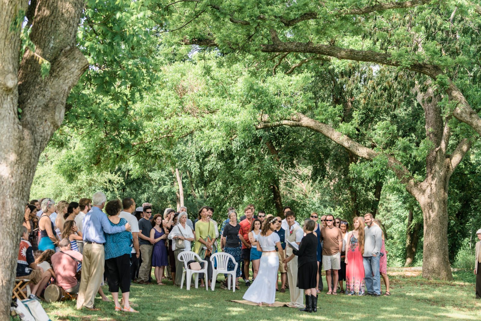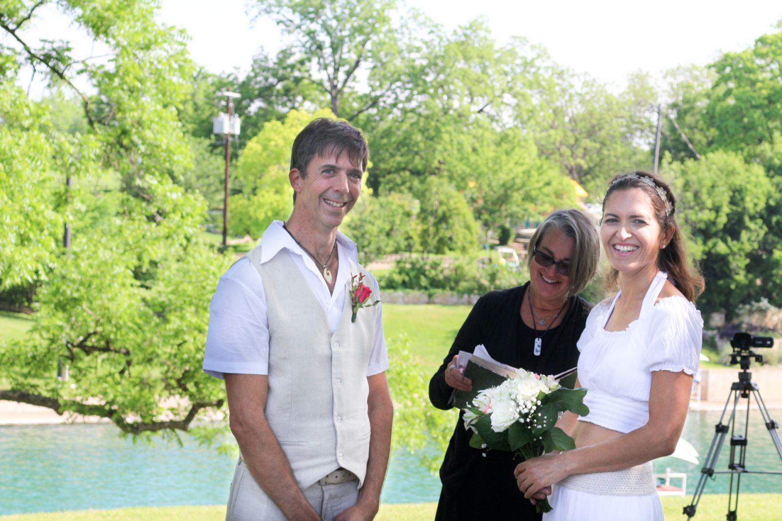 When we posted our engagement on social media, several people immediately asked if we were planning on getting married at the springs. And so the decision was made! We planned our ceremony for the end of April 2016, but the spring leading up to the wedding was filled with rain and regular pool flooding and closings. As the date drew closer, we started to get a bit nervous. Two weeks before the wedding the pool flooded and closed yet again. We had a backup plan at a nearby friend’s house, but it wasn’t what we wanted. The pool finally re-opened six days before our wedding, but the creek was high and weather was still stormy all week. The long-term forecast predicted a 100% chance of severe thunderstorms for the entire day. I chose to not think about it. When the wedding day finally came we woke at 4:00 am to a thunderstorm crashing over us. Fortunately the rain ended within an hour, the pool did not flood and the sky cleared off completely by 7. When we got to the springs at 9, the leaves were glistening with little droplets, the sky was crystalline and the pool was gorgeous. It was as perfect weather as you can have in Austin.
