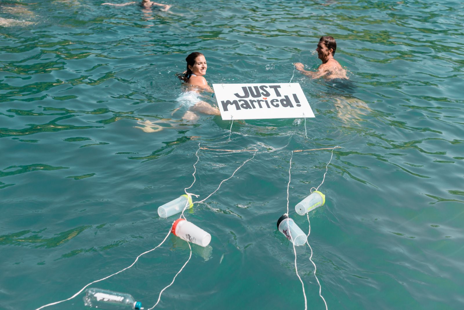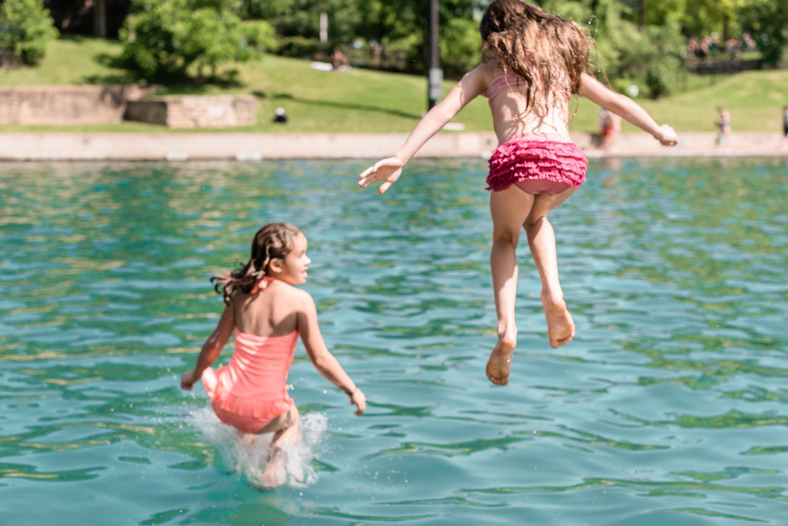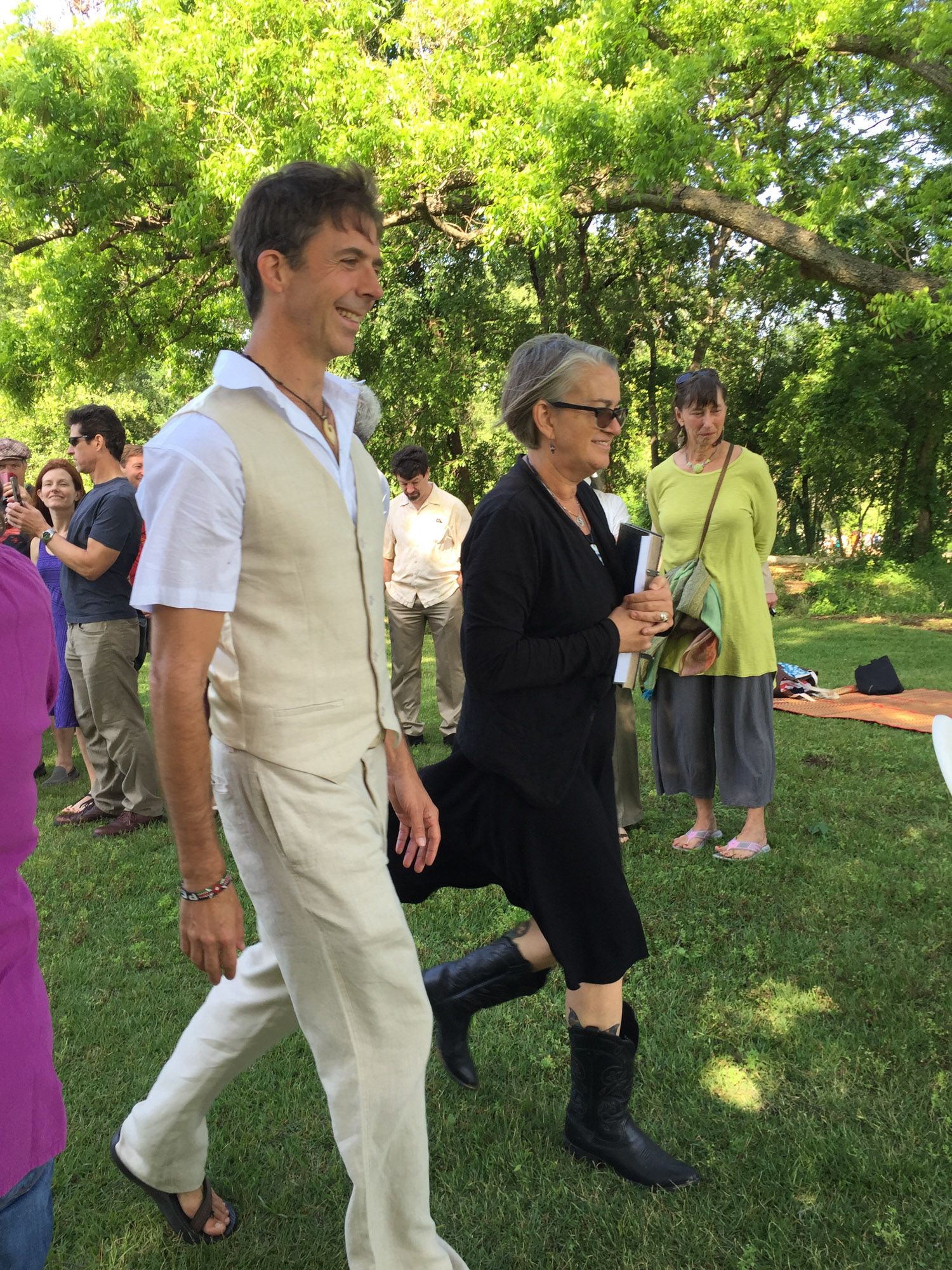 We had a simple barefoot ceremony surrounded by about 80 of our close friends and family under the pecan trees on the south hill overlooking the springs. RP Watson and Lance Harris played their ethereal music that is such a staple of the south hill, and we were married by Spike Gillespie. After the ceremony we walked down the sidewalk to the pool, lined up along the edge and jumped in the springs with most of our guests. Our good friends Dave Madden and Sarah Perez made a floating “Just Married” sign with strings of plastic bottles trailing behind that we swam off with. The whole thing was amazingly beautiful. The next day the sky clouded over again, and a week later the pool had flooded and closed once again.